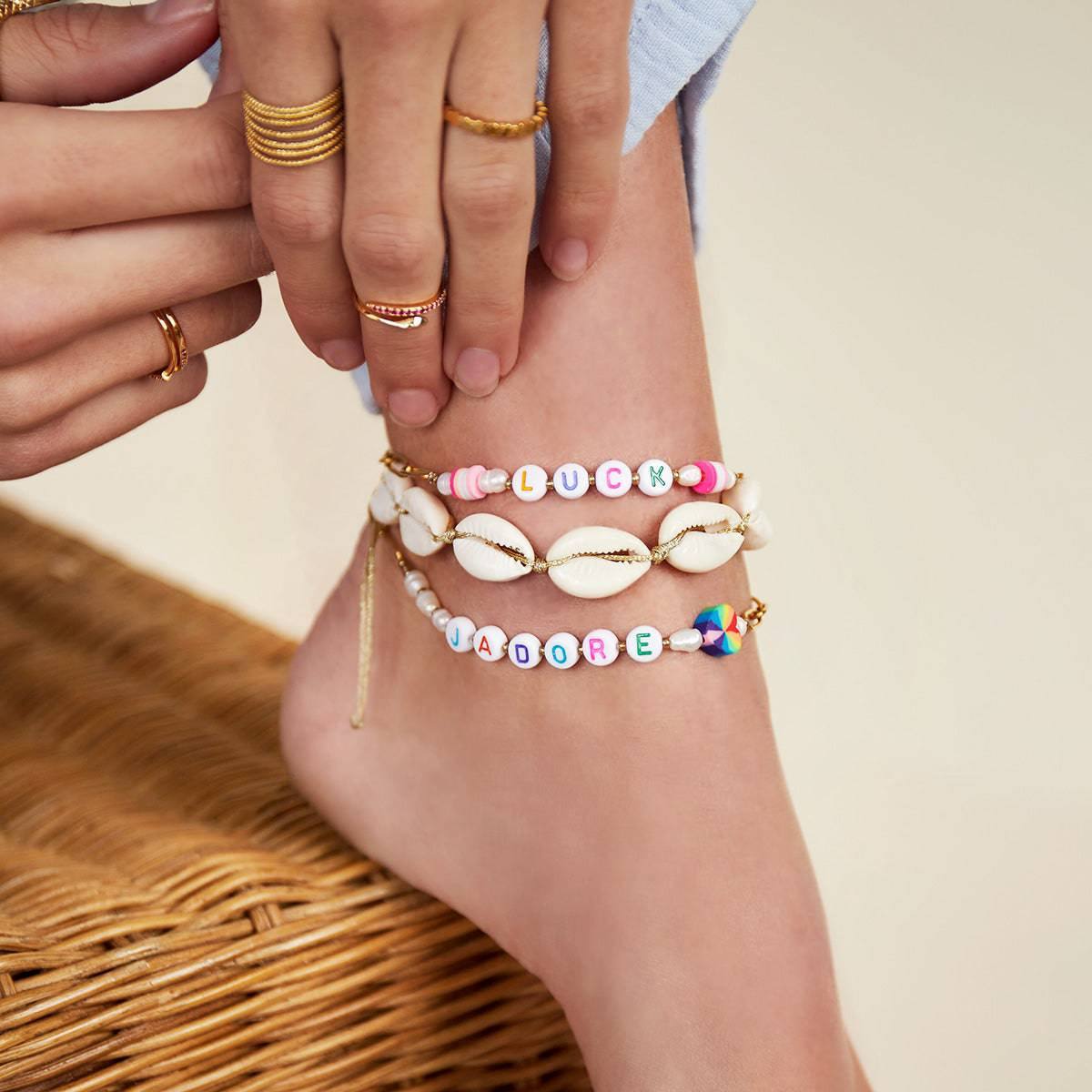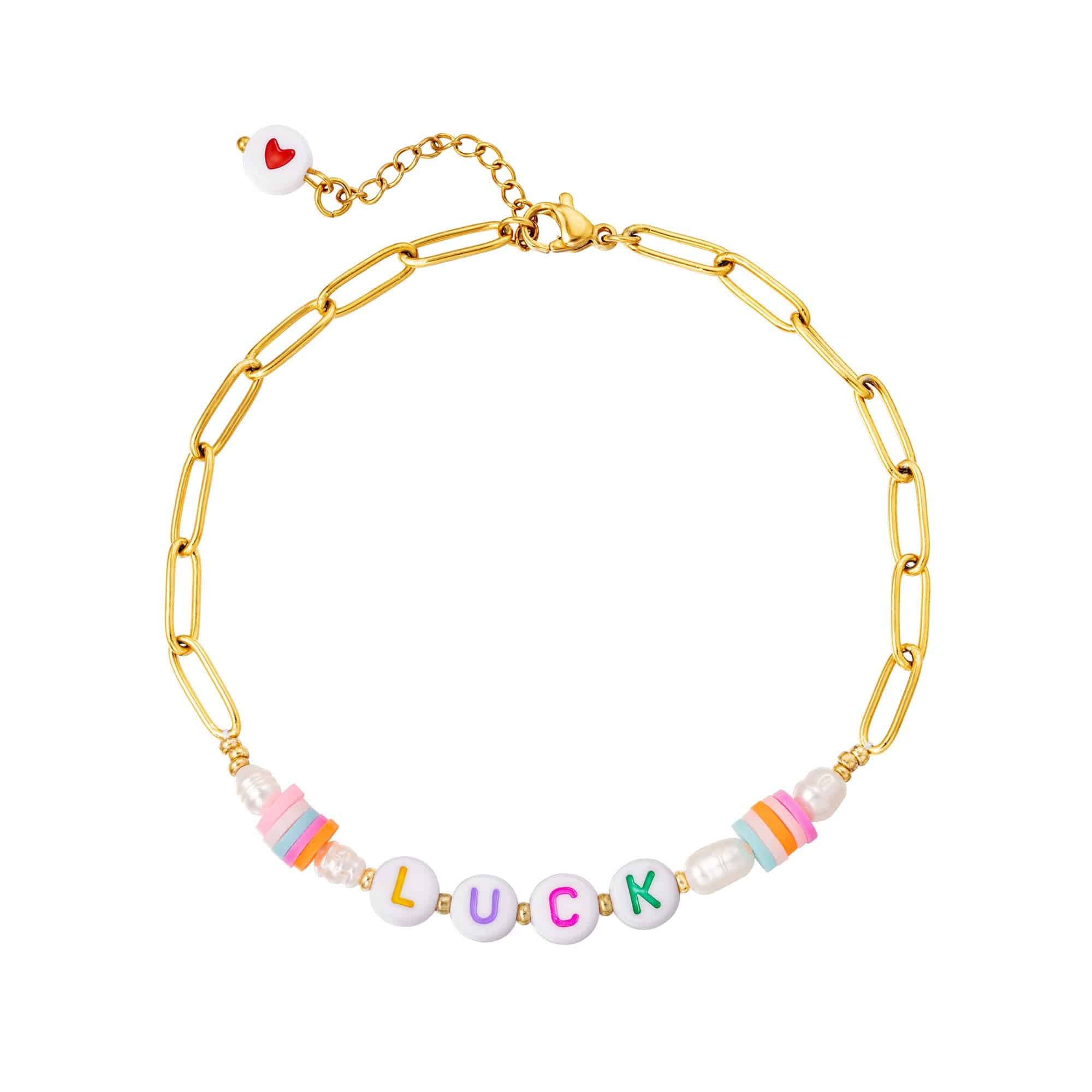 Nice stainless steel anklet with"LUCK"lettering made with interconnected stainless steel chain, pretty colored beads and cultured pearls. Please note that the products in this series are handmade and may differ slightly from the items in the pictures