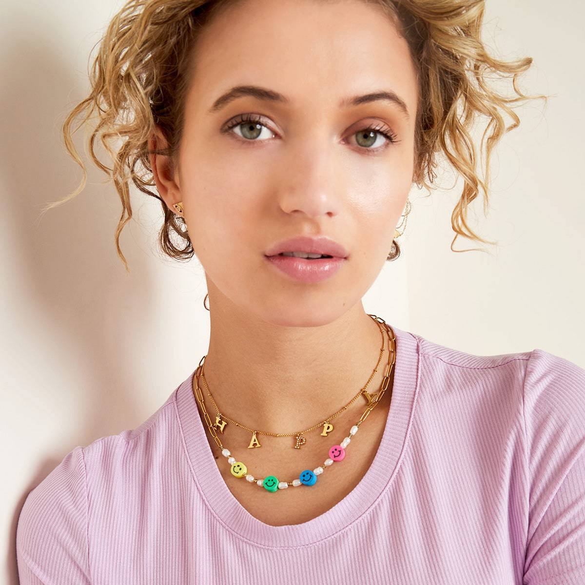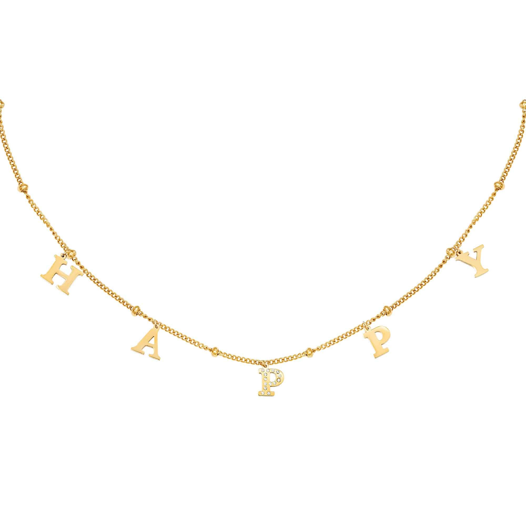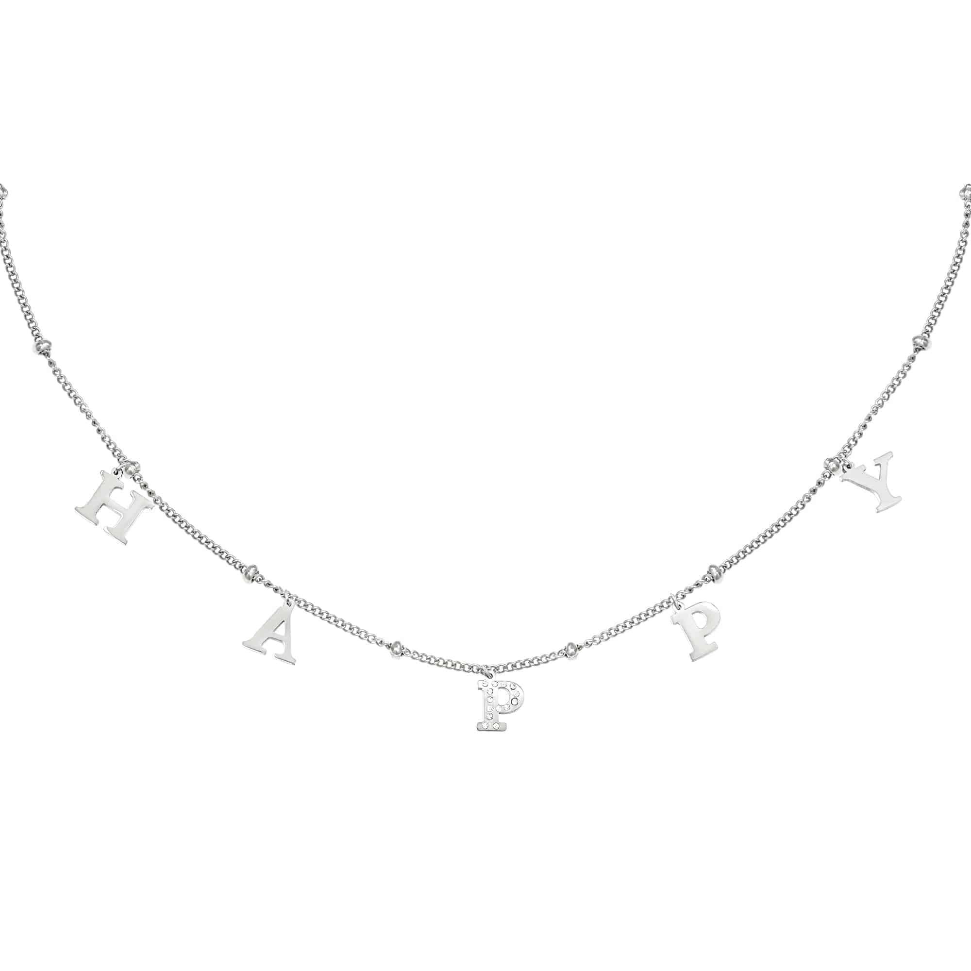 Silver colored stainless steel necklace with Happy writing. The letters feature an inlay of tiny rhinestones. Perfect to combine with the matching bracelet.