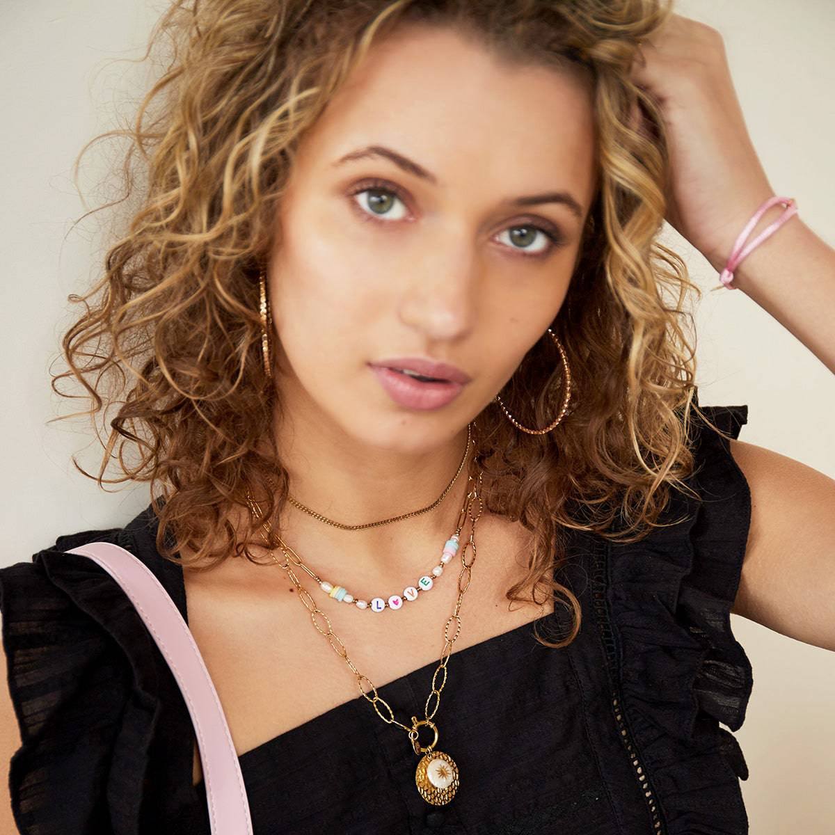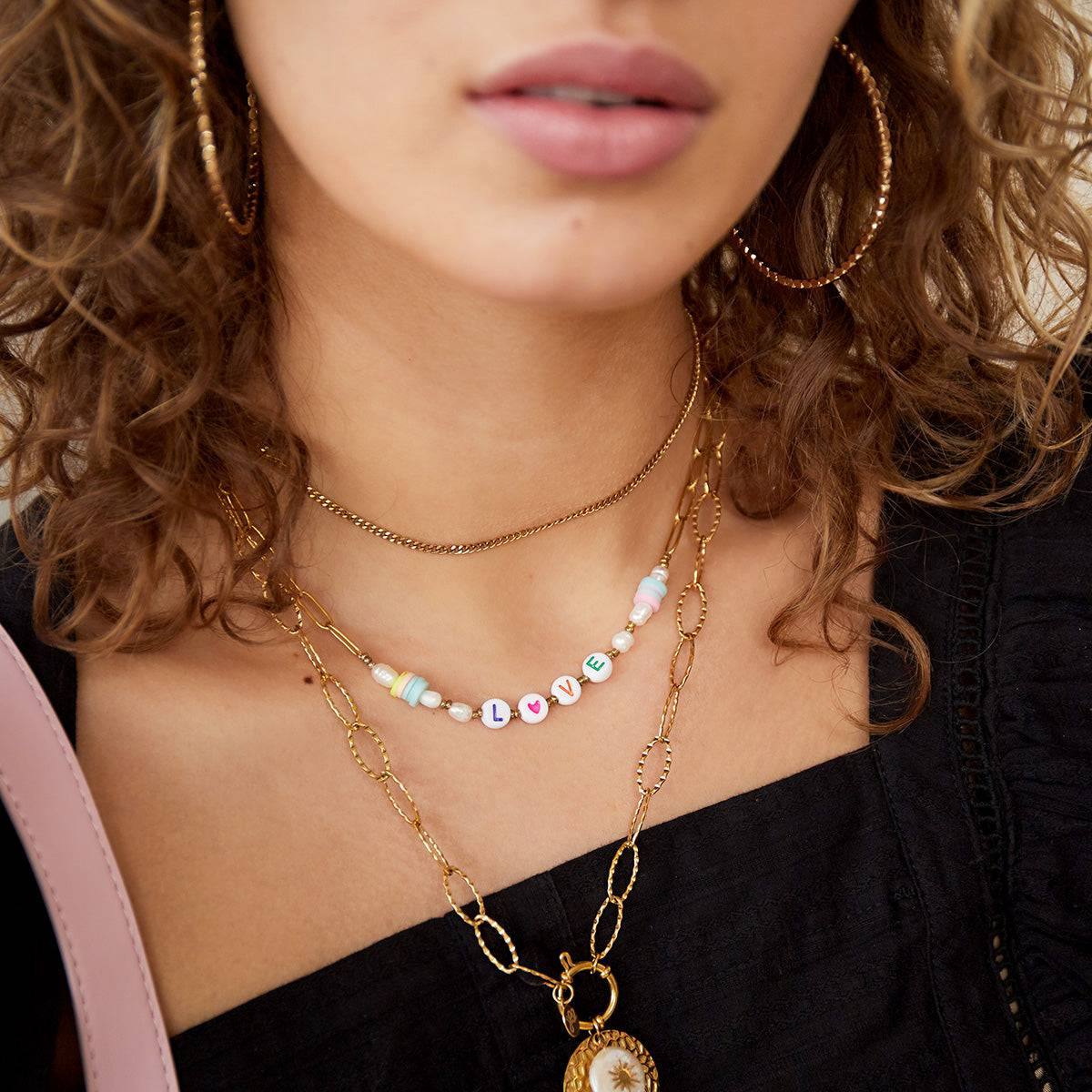 Pretty necklace in stainless steel with small beads that make up the word LOVE. Perfect to take you already in the summer mood!