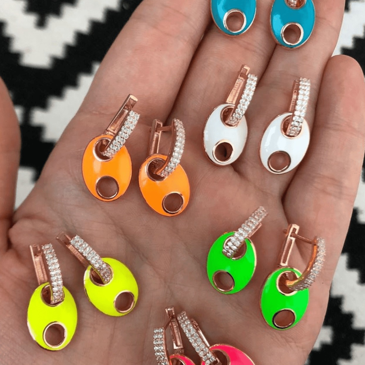 Elige estos pendientes con un diseño esencial para un estilo elegante y actual. Adornado con un baño de colores y un micro pavé, agregará un toque divertido a tu atuendo diario.