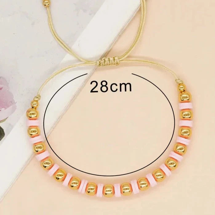 Bracciale Estivo con Dischi Piccoli Rosa e Palline Oro