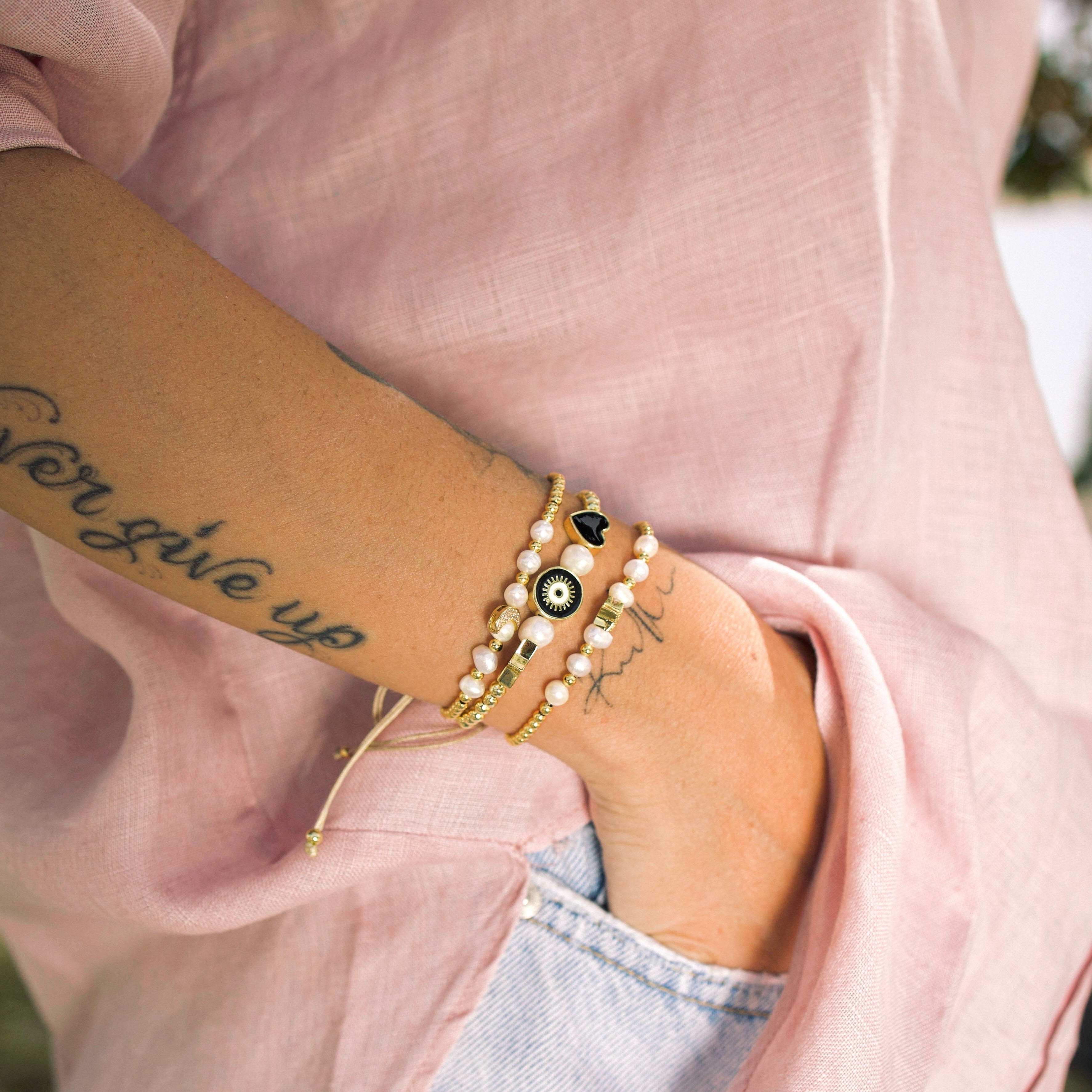Immergiti nella bellezza con il nostro Bracciale con Smalto Placcato Oro, Cuore, Stella, Malocchio. Questo elegante bracciale dispone di un trio di ciondoli: un cuore, una stella e un malocchio, tutti in smalto placcato oro. Perfetto per un look quotidiano o una serata speciale, questo accessorio è un esempio di eleganza senza tempo.