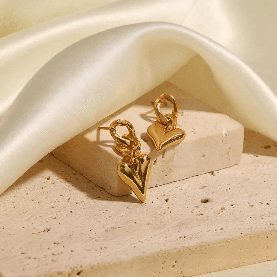 Gli orecchini cuore con catena sono un gioiello elegante e romantico, perfetto per completare il tuo look con un tocco di stile. Questi orecchini presentano un cuore placcato in oro giallo con una catena sottile che lo collega all'orecchino. Il design delicato e raffinato dei orecchini cuore li rende adatti a qualsiasi occasione, dall'uso quotidiano alle occasioni speciali.
