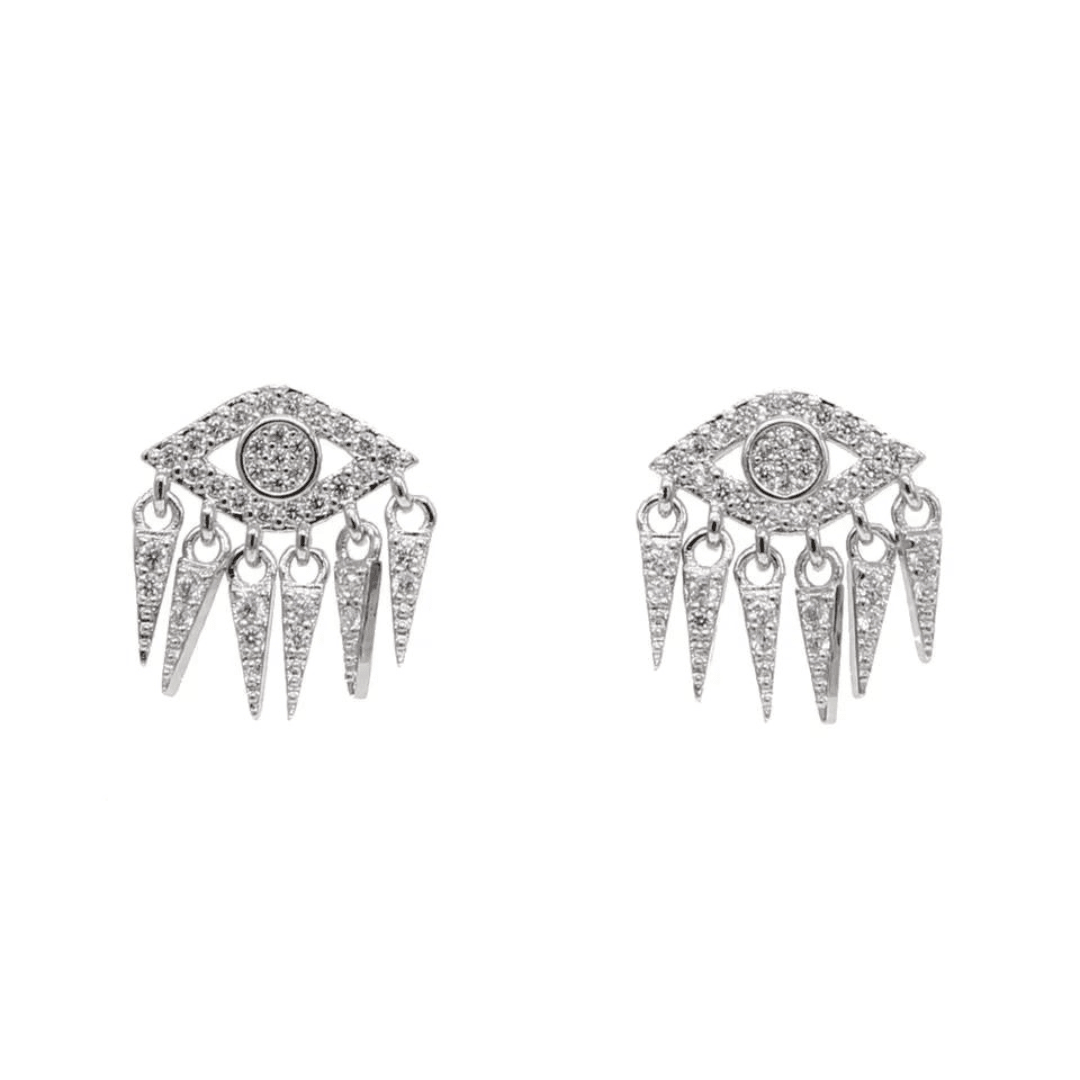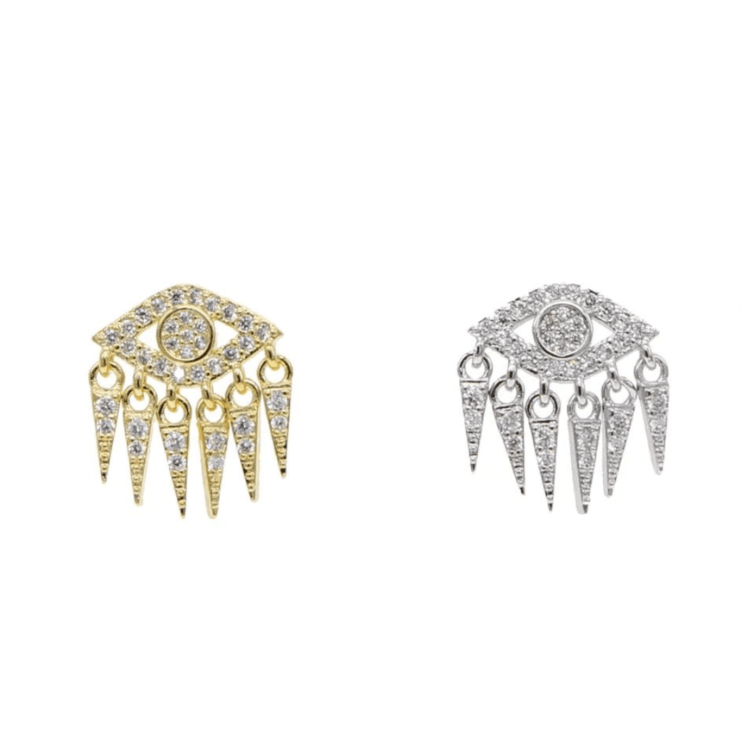 Questo orecchino con pendenti a forma di malocchio turco e incastonati con zirconi è un accessorio unico e ricco di significato.